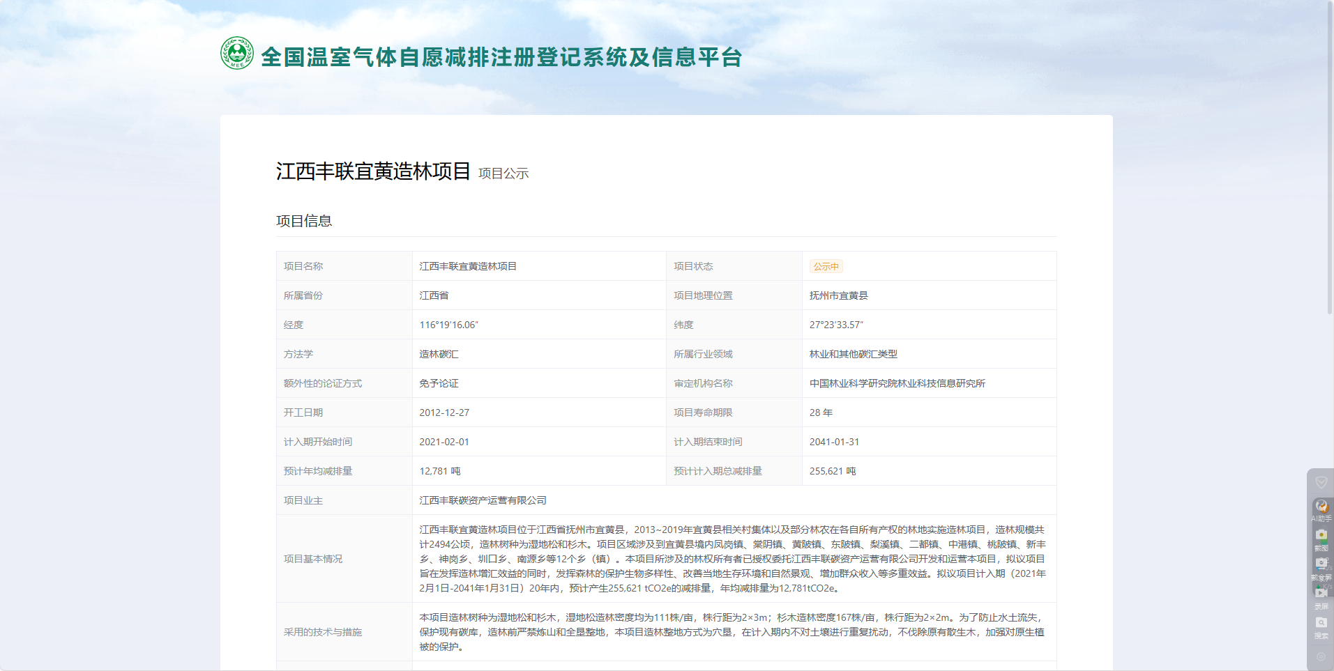 12月27日,由撫州市農(nóng)發(fā)集團(tuán)開發(fā)的宜黃縣林業(yè)碳匯項(xiàng)目成功列入CCER造林碳匯項(xiàng)目公示名單。